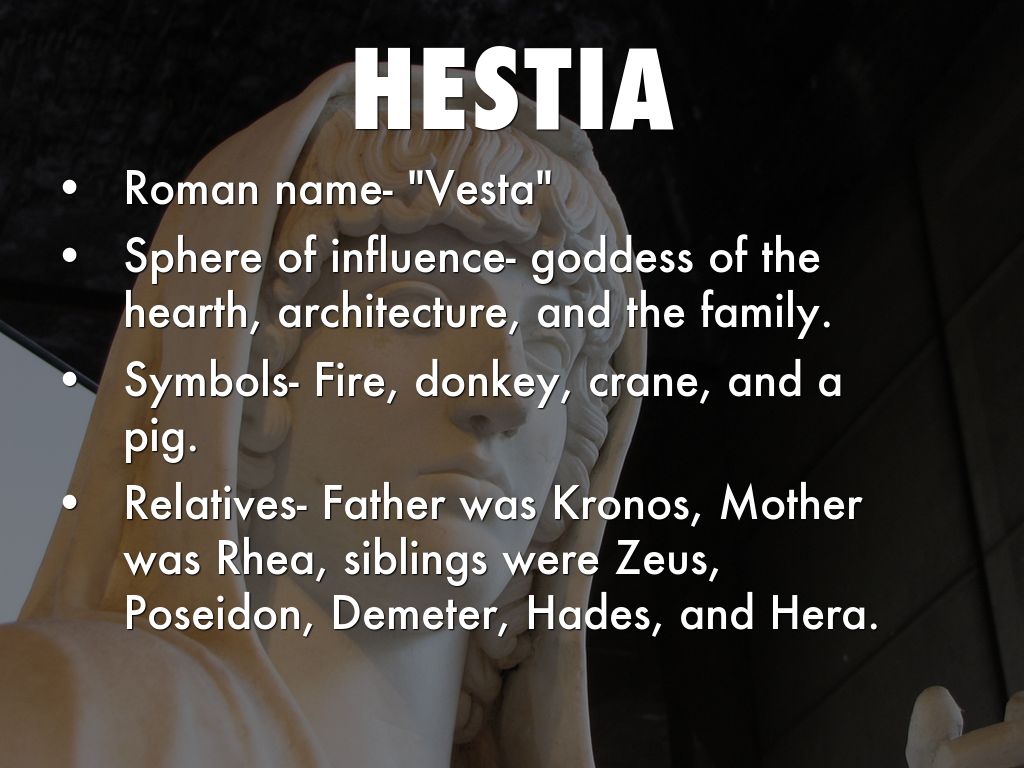 Sphere of influence- goddess of the hearth, architecture, and the family.