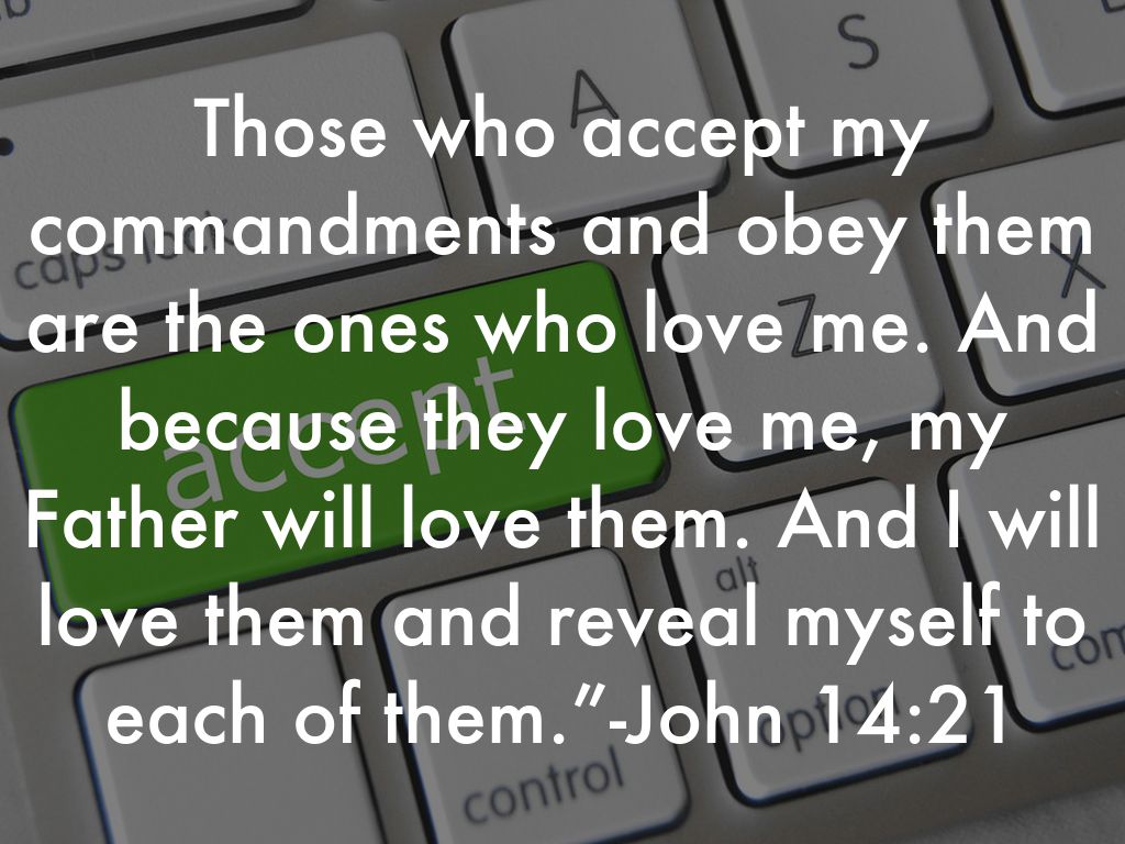Those who accept my commandments and obey them are the ones who love me. And because they love me, my Father will love them. And I will love them and reveal myself to each of them.”-John 14:21