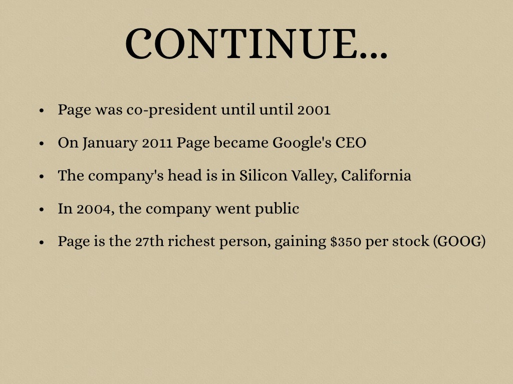• Page is the 27th richest person, gaining $350 per stock (GOOG)