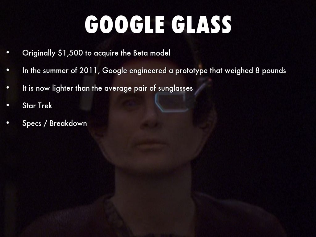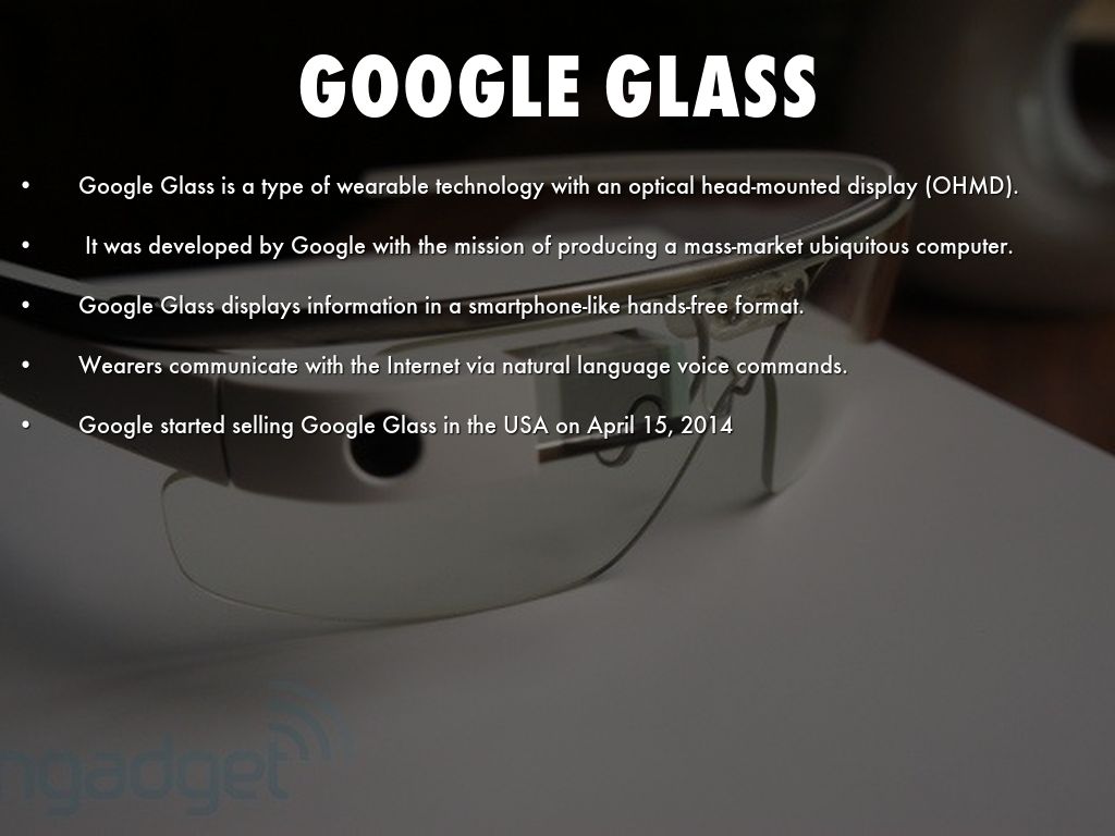 Google Glass is a type of wearable technology with an optical head-mounted display (OHMD).