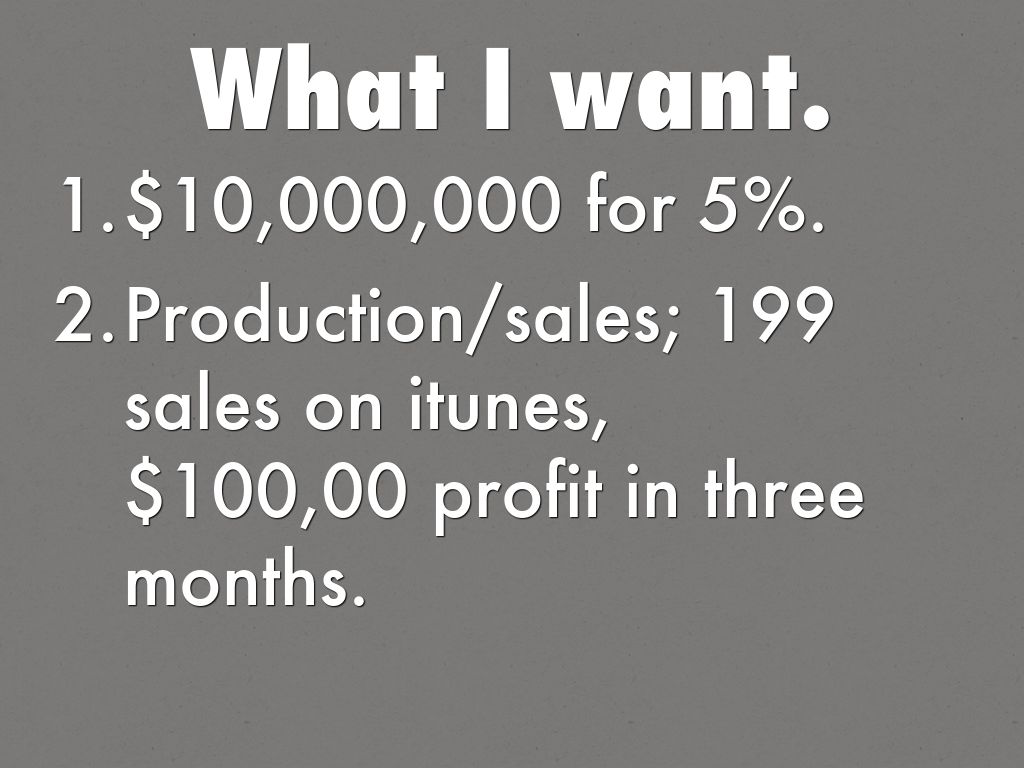 Production/sales; 199 sales on itunes, $100,00 profit in three months.