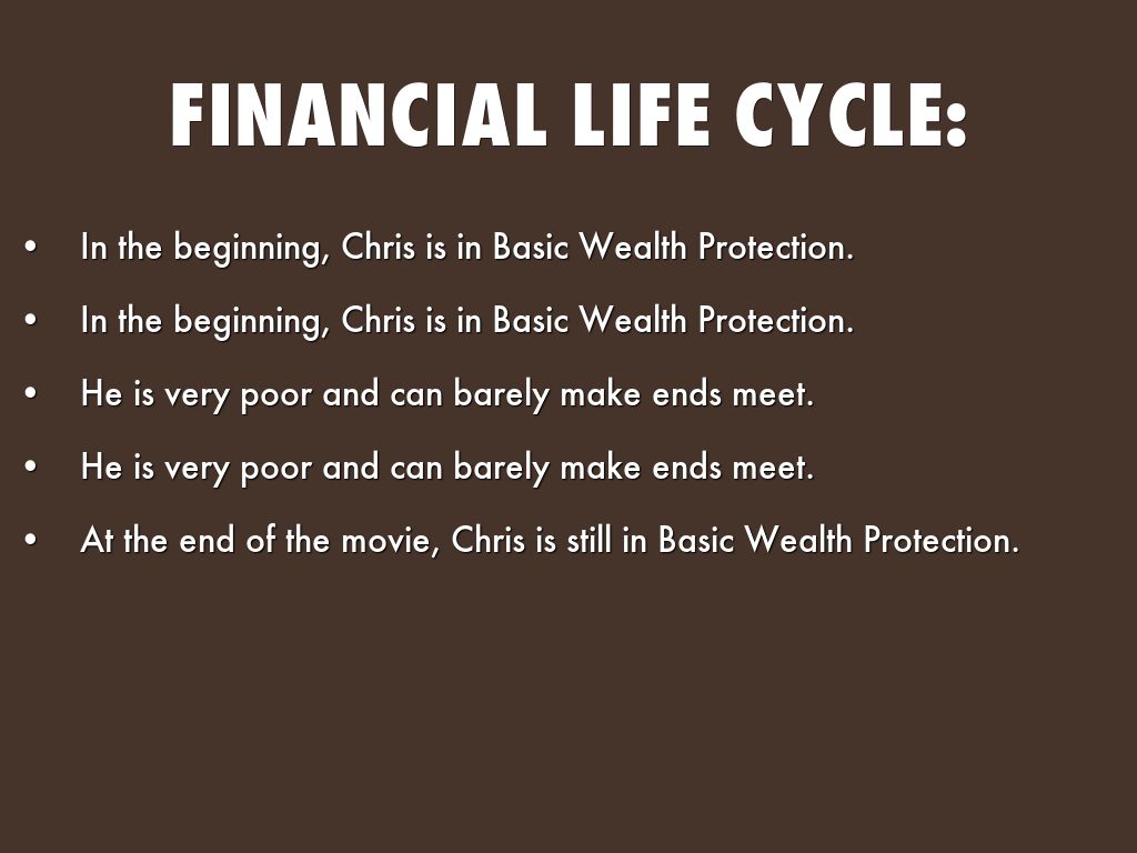 At the end of the movie, Chris is still in Basic Wealth Protection.