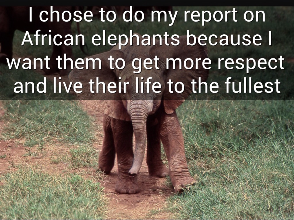 I chose to do my report on African elephants because I want them to get more respect and live their life to the fullest