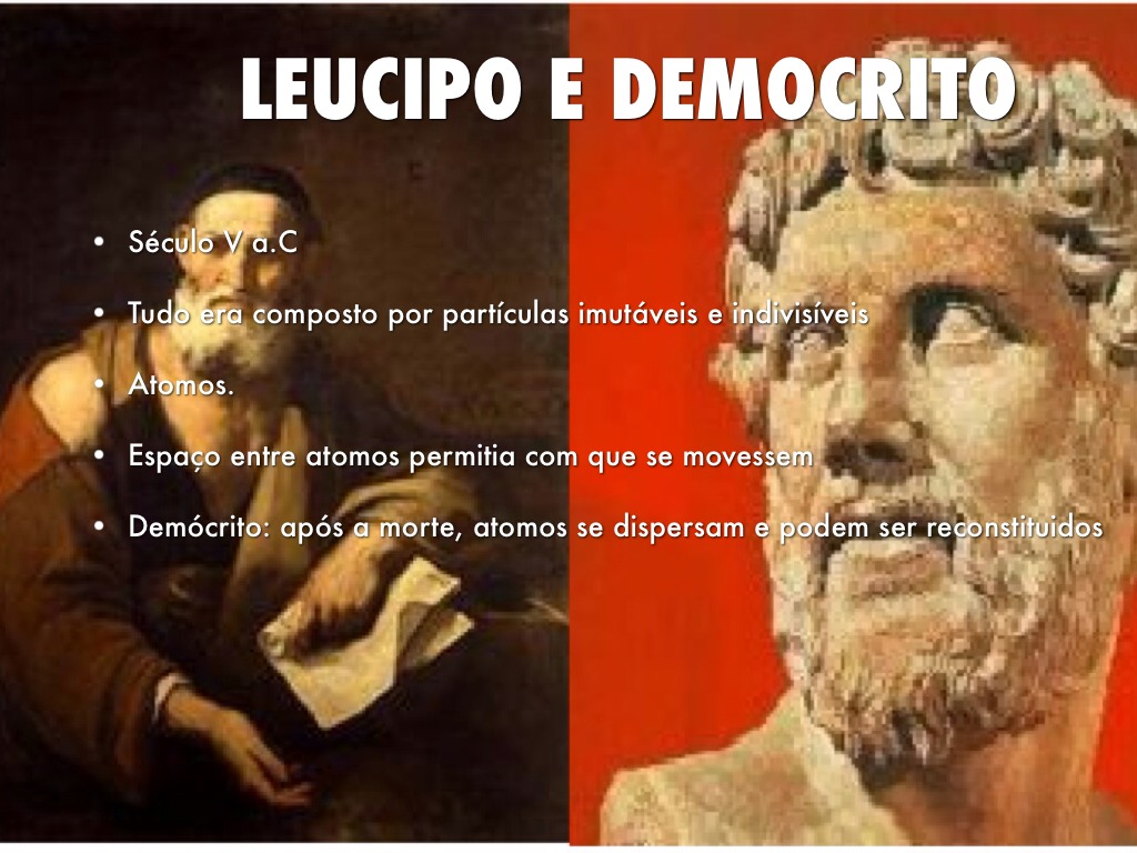 • Tudo era composto por partículas imutáveis e indivisíveis