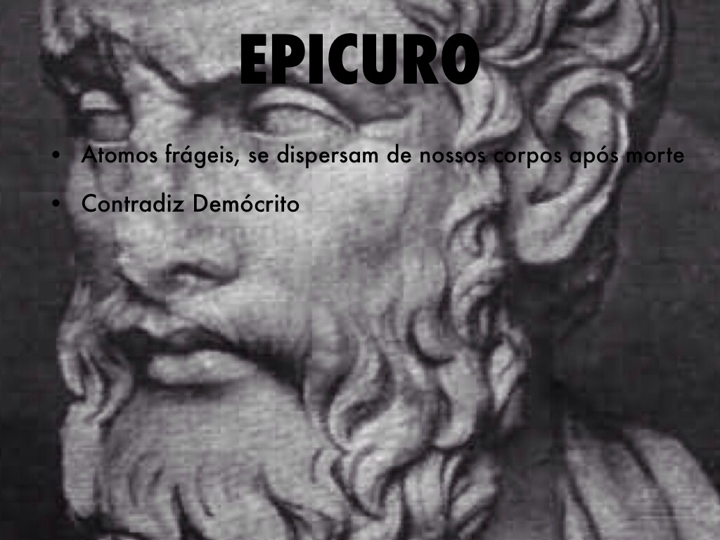 • Demócrito: após a morte, atomos se dispersam e podem ser reconstituidos