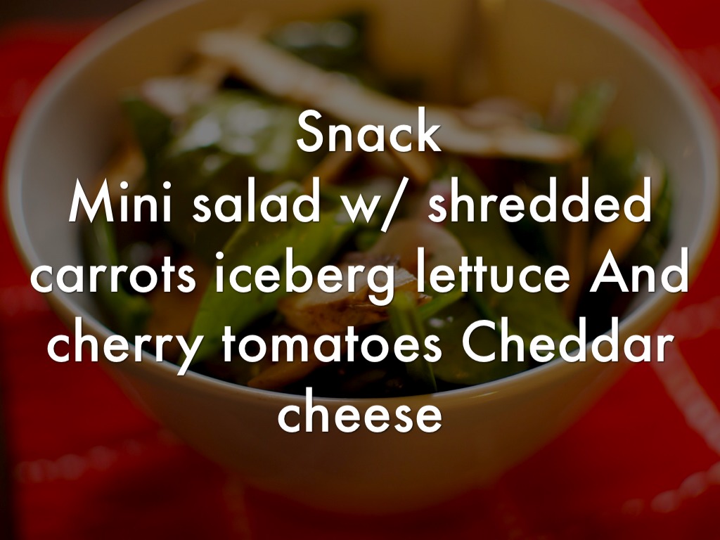 Mini salad w/ shredded carrots iceberg lettuce And cherry tomatoes Cheddar cheese