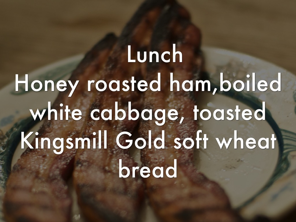 Honey roasted ham,boiled white cabbage, toasted Kingsmill Gold soft wheat bread
