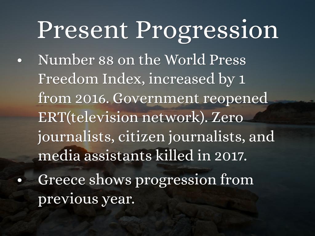 Thesis Statement Greece compared to other countries does not rank very low on press freedom and improved its rank in recent years, however the country does need to advance more in regards to allowing the press to write without receiving unfair reprimandations.
