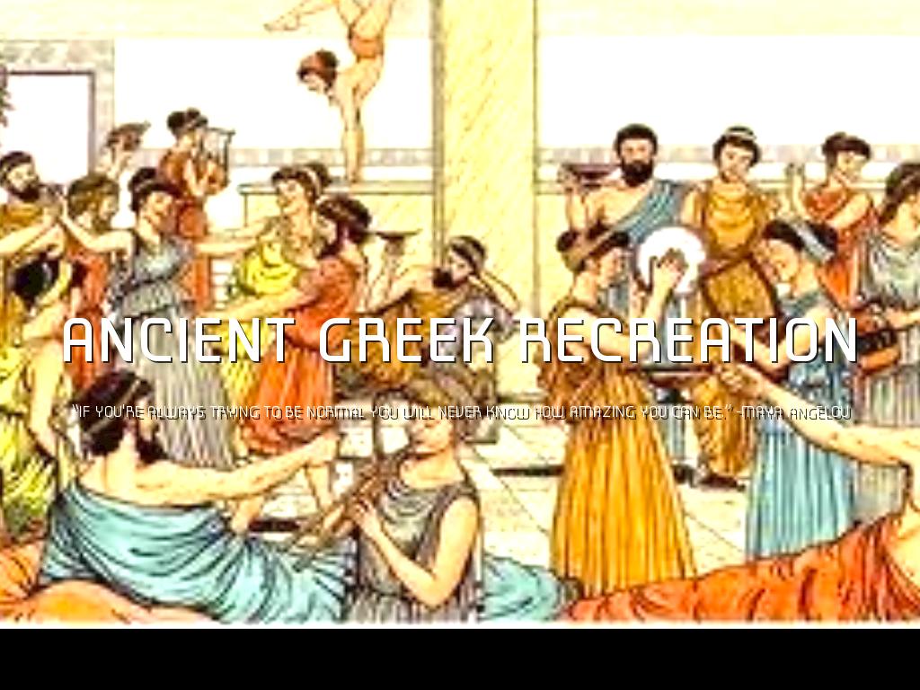 Greek men talked with friends in the agora (a public open space used for assemblies and markets) or at drinking parties called symposiums in their homes. Greek men also like sports and exercise and swim at public sports facilities.