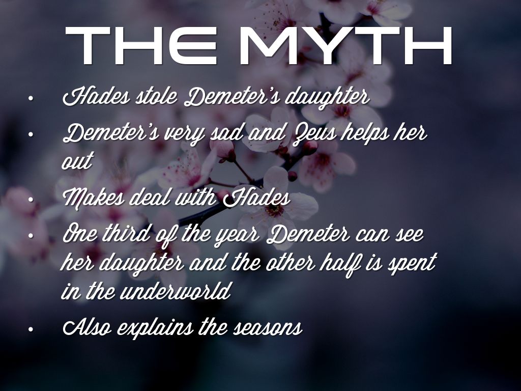One third of the year Demeter can see her daughter and the other half is spent in the underworld