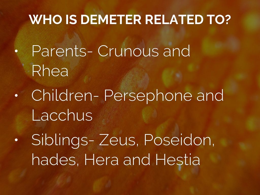 Siblings- Zeus, Poseidon, hades, Hera and Hestia