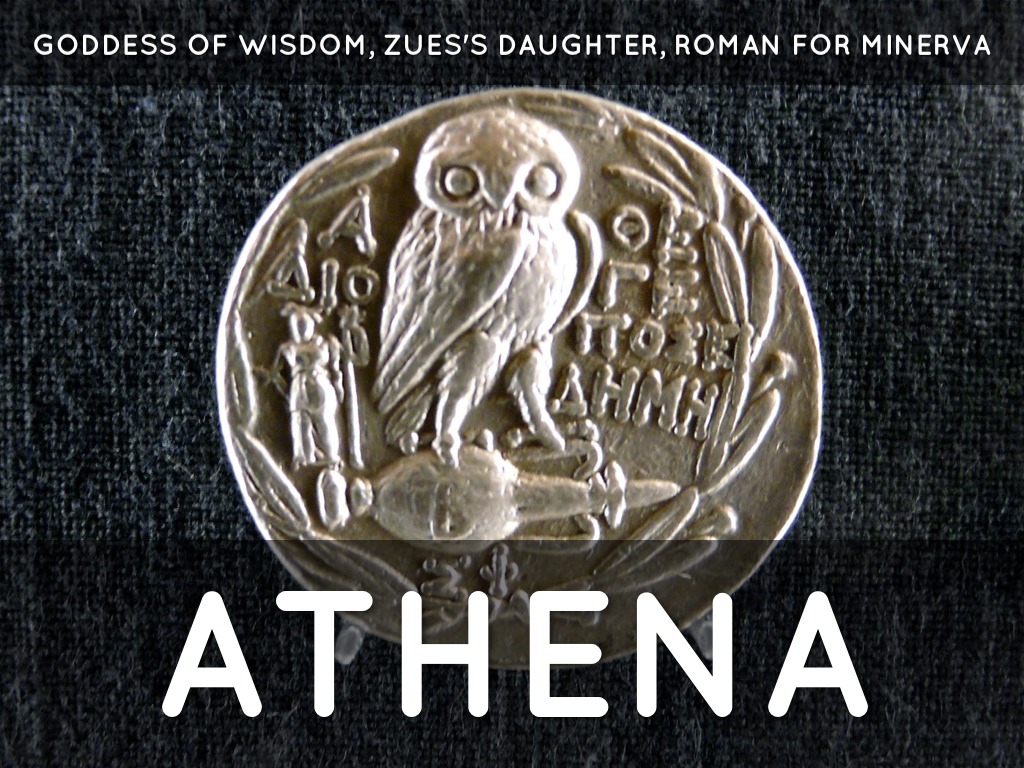 GODDESS OF WISDOM, ZUES'S DAUGHTER, ROMAN FOR MINERVA