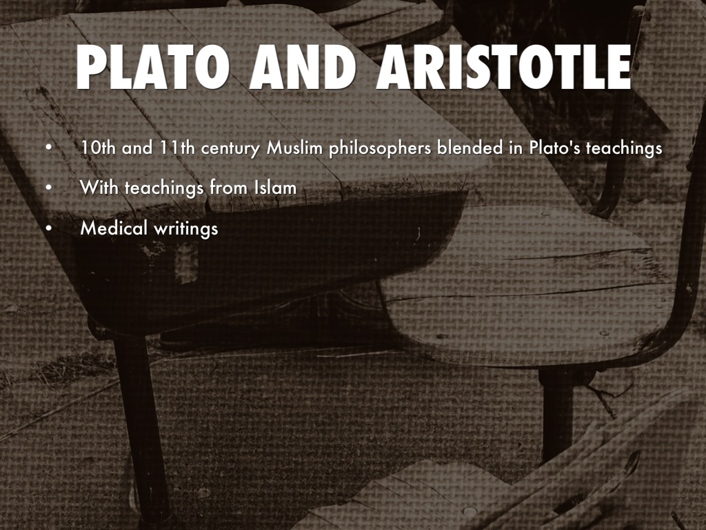 • 10th and 11th century Muslim philosophers blended in Plato's teachings