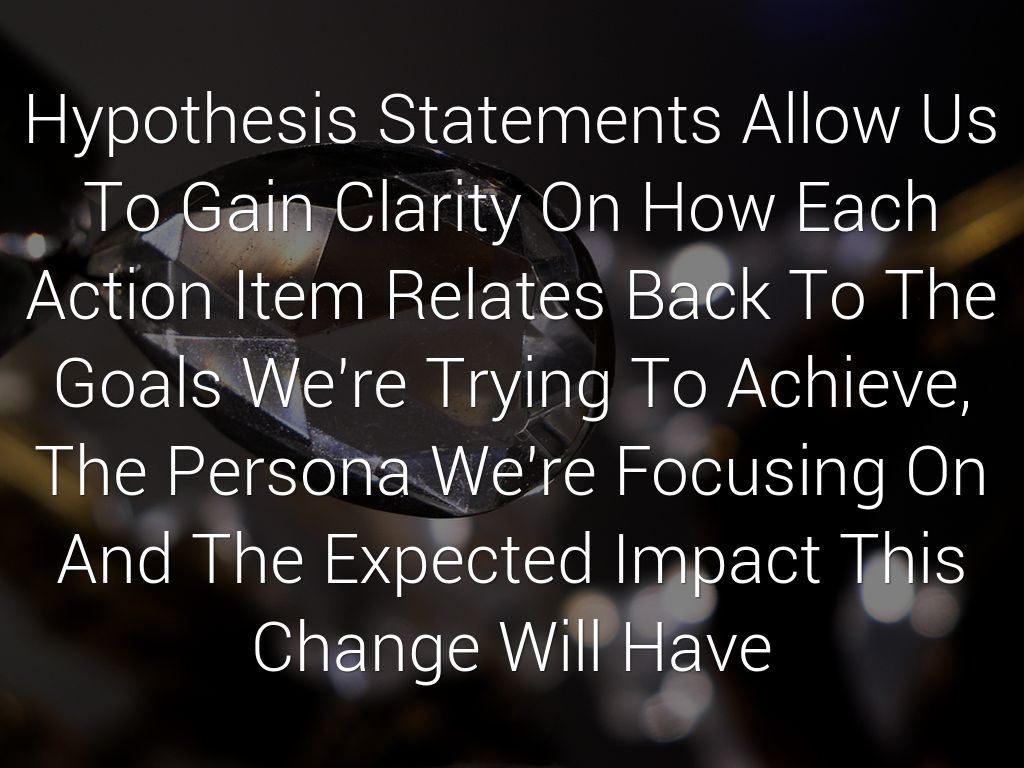 Hypothesis Statements Allow Us To Gain Clarity On How Each Action Item Relates Back To The Goals We're Trying To Achieve, The Persona We're Focusing On And The Expected Impact This Change Will Have