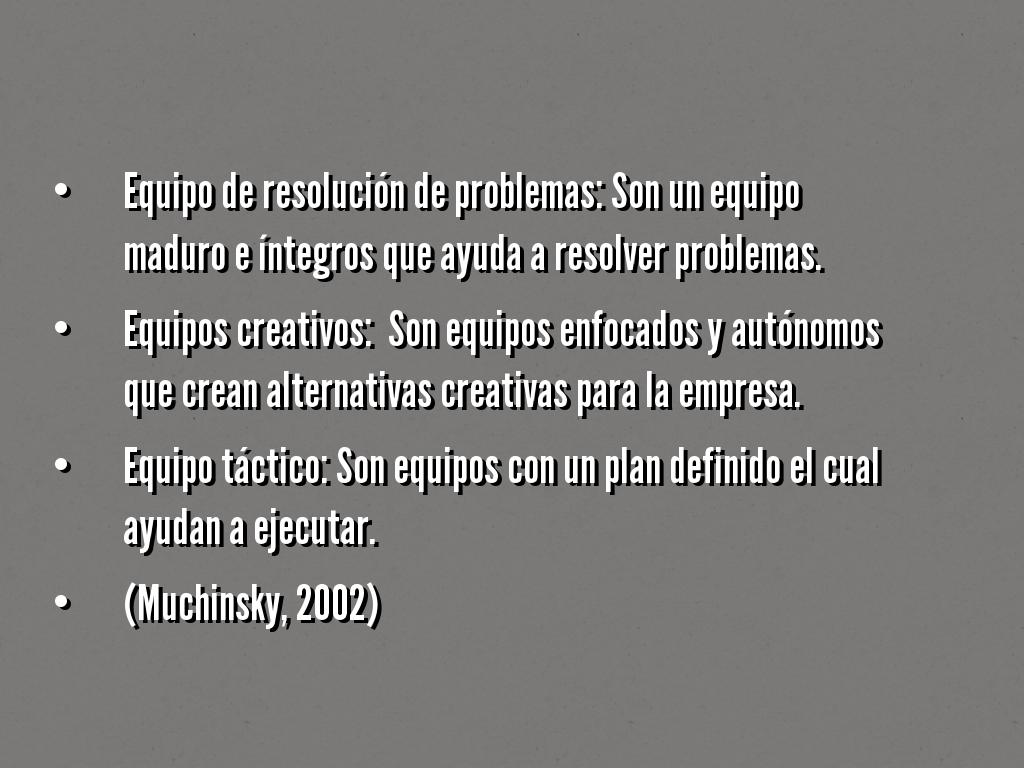 • Equipo de resolución de problemas: Son un equipo maduro e íntegros que ayuda a resolver problemas.