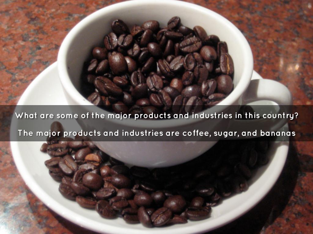The major products and industries are coffee, sugar, and bananas