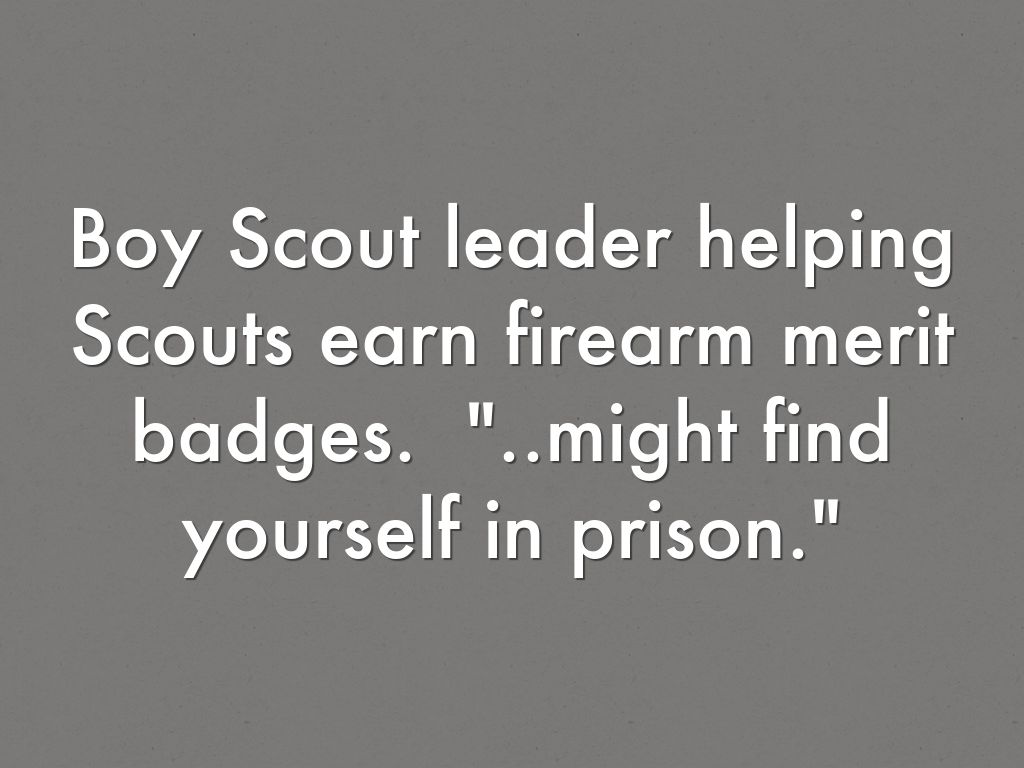 Boy Scout leader helping Scouts earn firearm merit badges. "..might find yourself in prison."