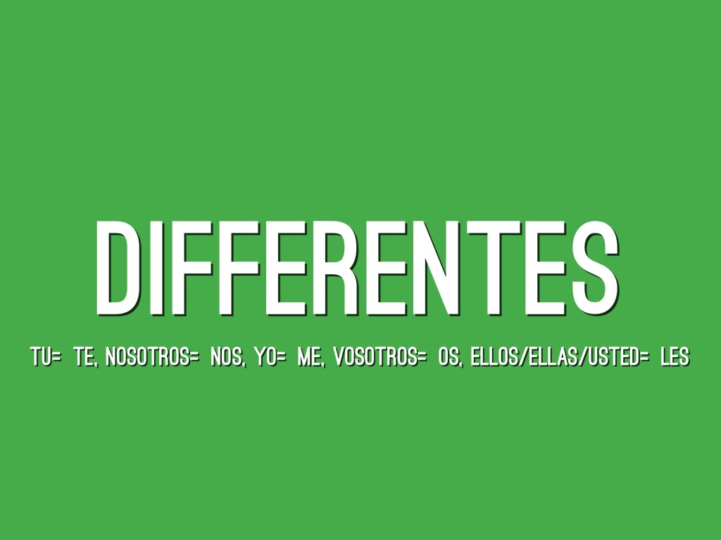 TU=TE, NOSOTROS=NOS, YO=ME, VOSOTROS=OS, ELLOS/ELLAS/USTED=LES
