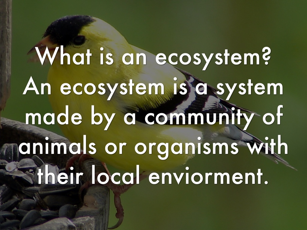 An ecosystem is a system made by a community of animals or organisms with their local enviorment.