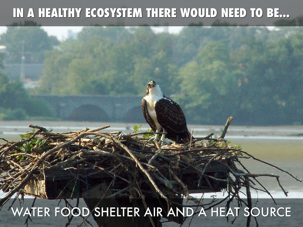 A HEALTHY ECOSYSTEM NEEDS TO HAVE FOOD, WATER, SHELTER, AND AIR