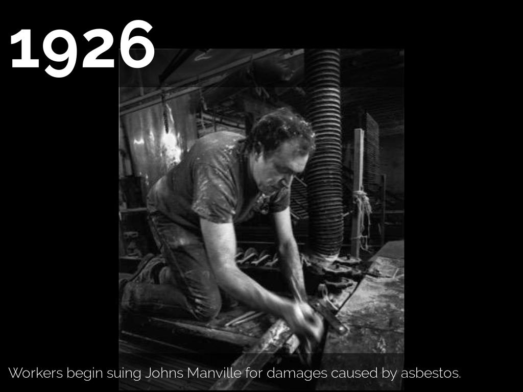 Workers begin suing Johns Manville for damages caused by asbestos.