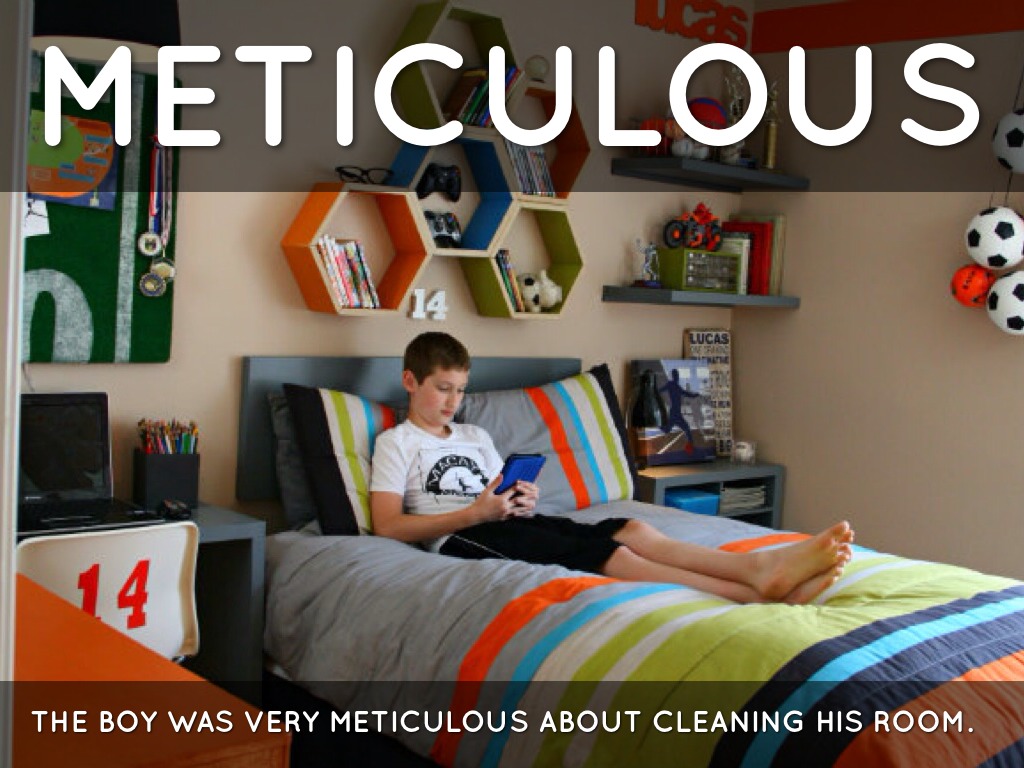 THE BOY WAS VERY METICULOUS ABOUT CLEANING HIS ROOM.