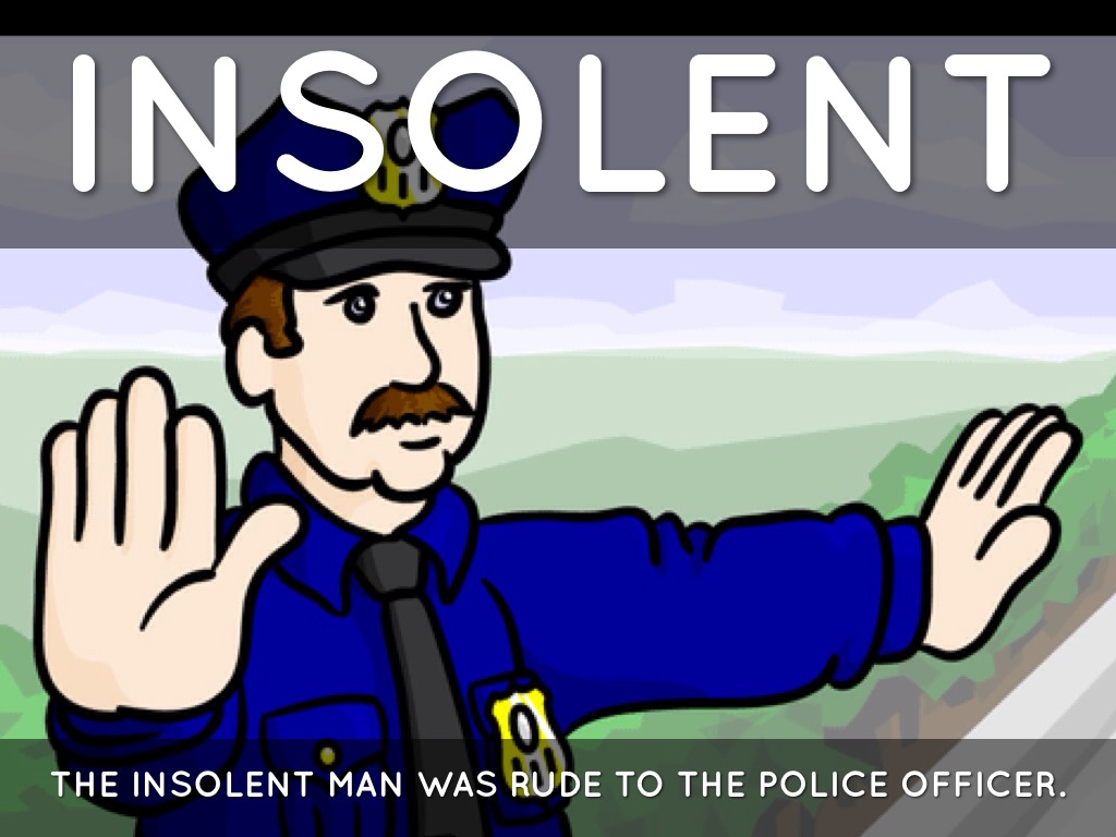 THE INSOLENT MAN WAS RUDE TO THE POLICE OFFICER.