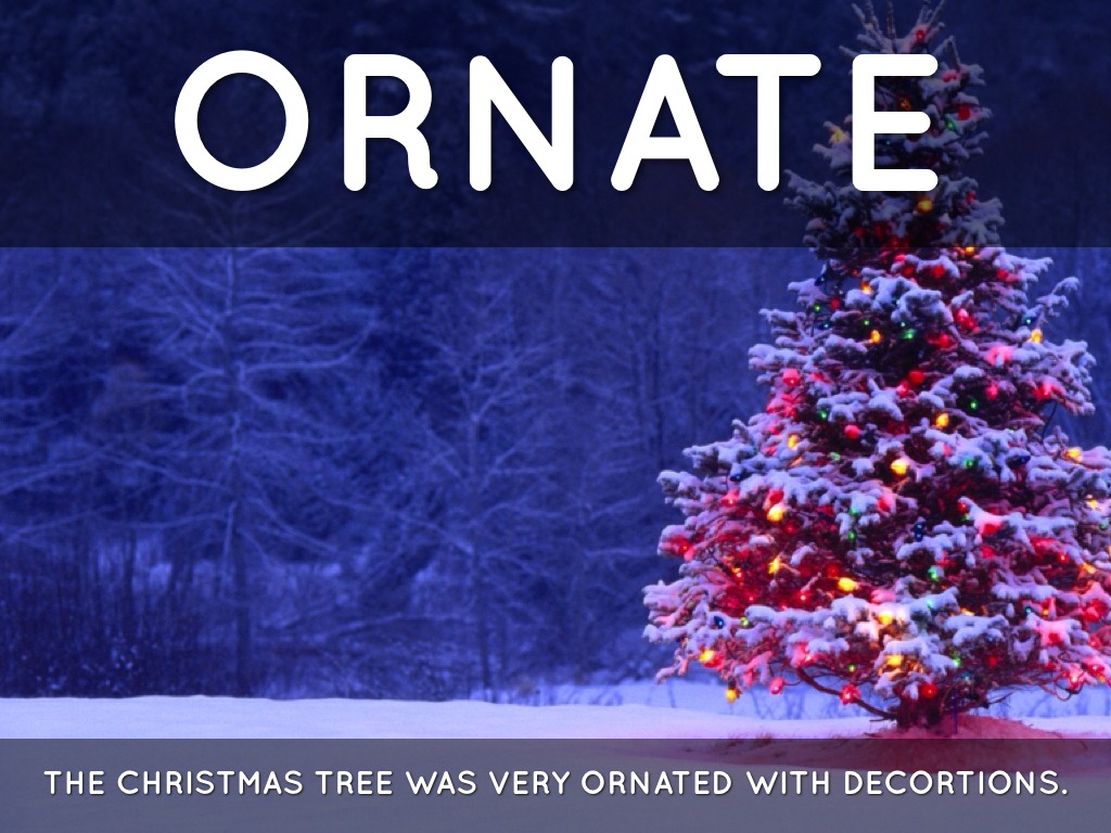 THE CHRISTMAS TREE WAS VERY ORNATED WITH DECORtIONS.