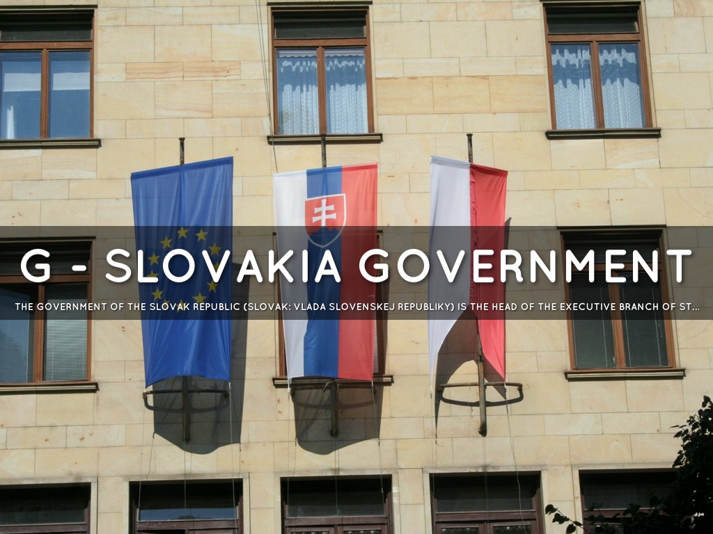 THE GOVERNMENT OF THE SLOVAK REPUBLIC (SLOVAK: VLÁDA SLOVENSKEJ REPUBLIKY) IS THE HEAD OF THE EXECUTIVE BRANCH OF STATE IN SLOVAKIA. IT IS LED BY THE PRIME ...