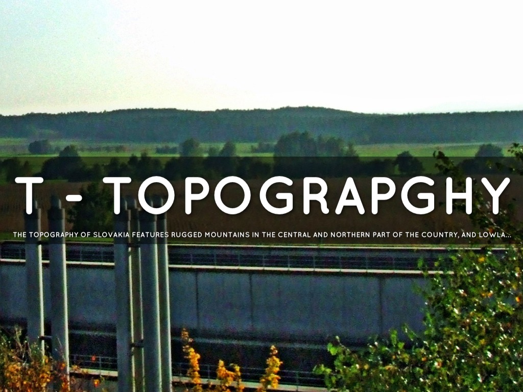 THE TOPOGRAPHY OF SLOVAKIA FEATURES RUGGED MOUNTAINS IN THE CENTRAL AND NORTHERN PART OF THE COUNTRY, AND LOWLANDS IN THE SOUTH. THE HIGH TATRAS (TATRY) ...
