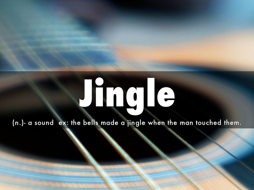 (n.)- a sound ex: the bells made a jingle when the man touched them.