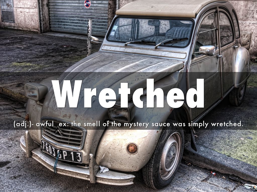 (adj.)- awful ex: the smell of the mystery sauce was simply wretched.