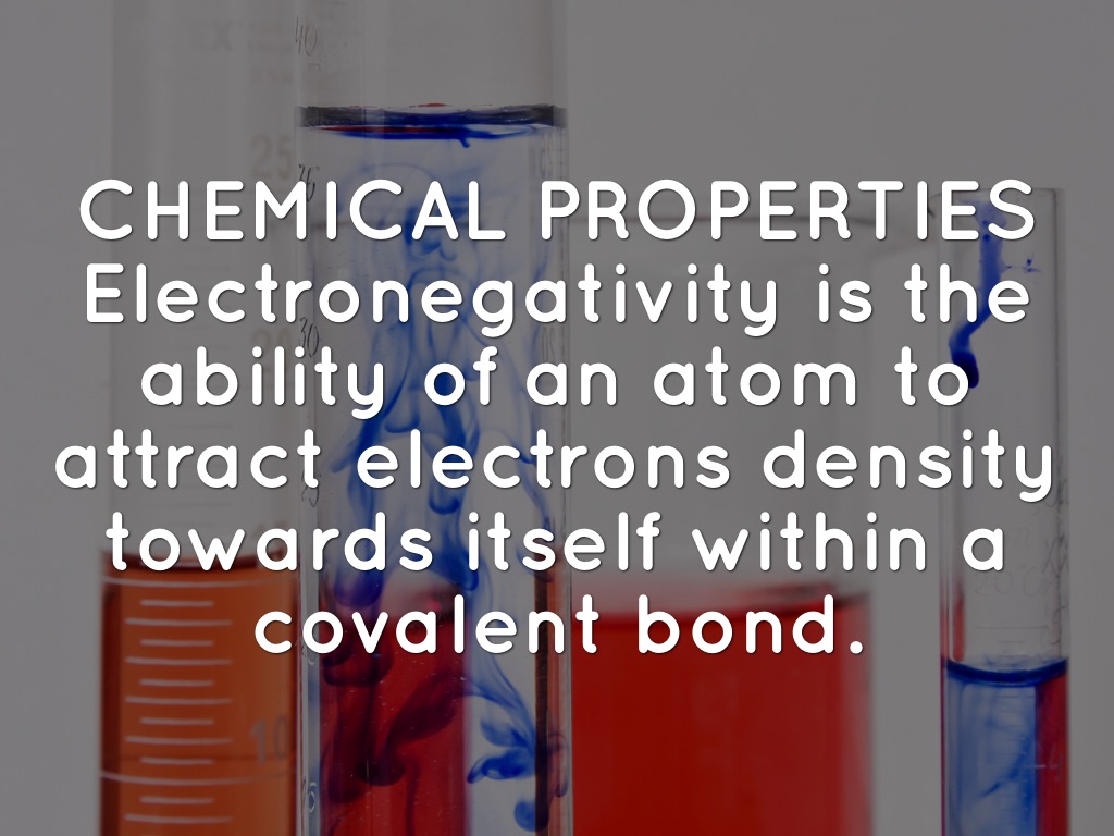 Electronegativity is the ability of an atom to attract electrons density towards itself within a covalent bond.