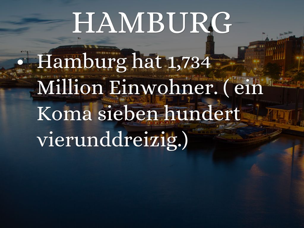 Hamburg hat 1,734 Million Einwohner. ( ein Koma sieben hundert vierunddreizig.)