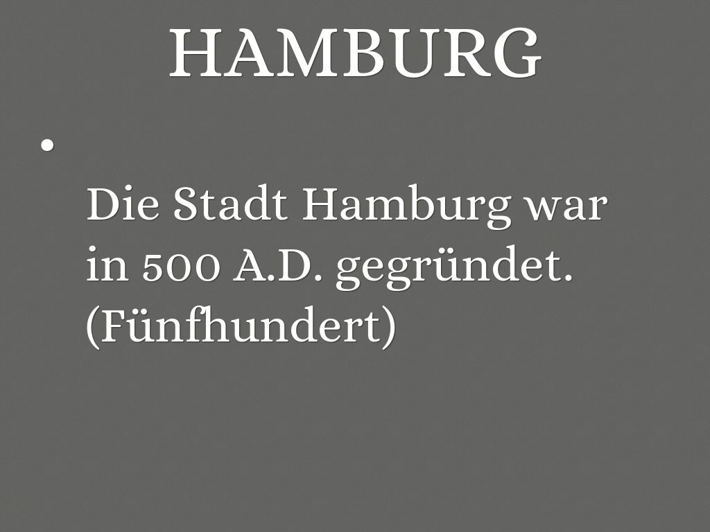 Die Stadt Hamburg war in 500 A.D. gegründet. (Fünfhundert)