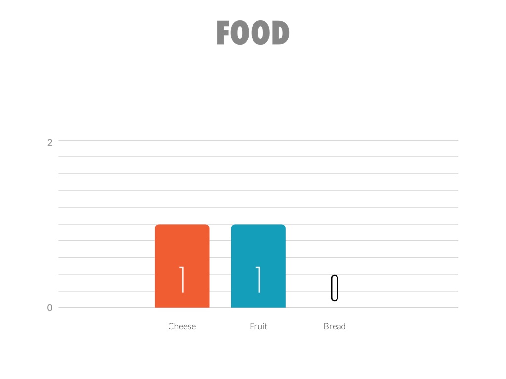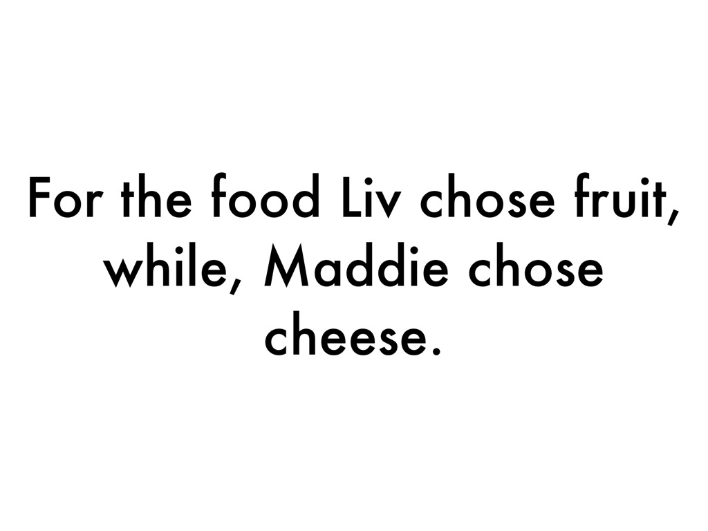 For the food Liv chose fruit, while, Maddie chose cheese.