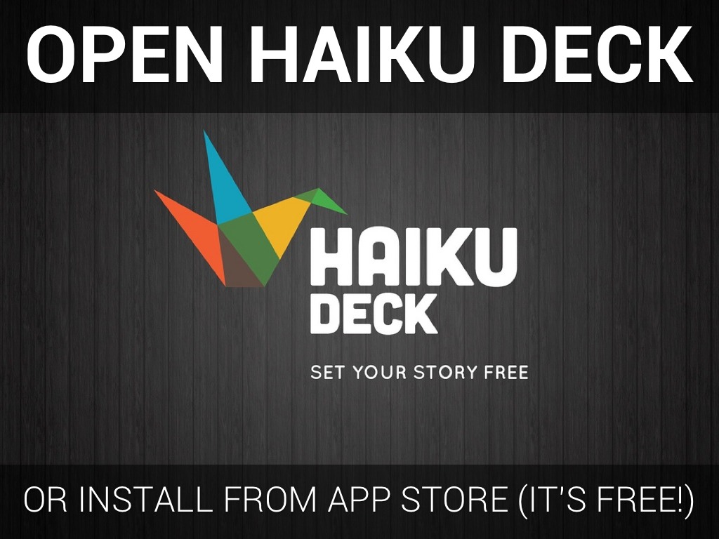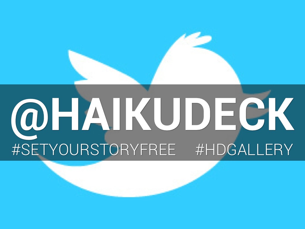 www.twitter.com/haikudeckYou can also use the hashtags #setyourstoryfree to see what other Haiku Deck users are publishing, or #hdgallery to submit one of your decks to be considered for our Gallery.