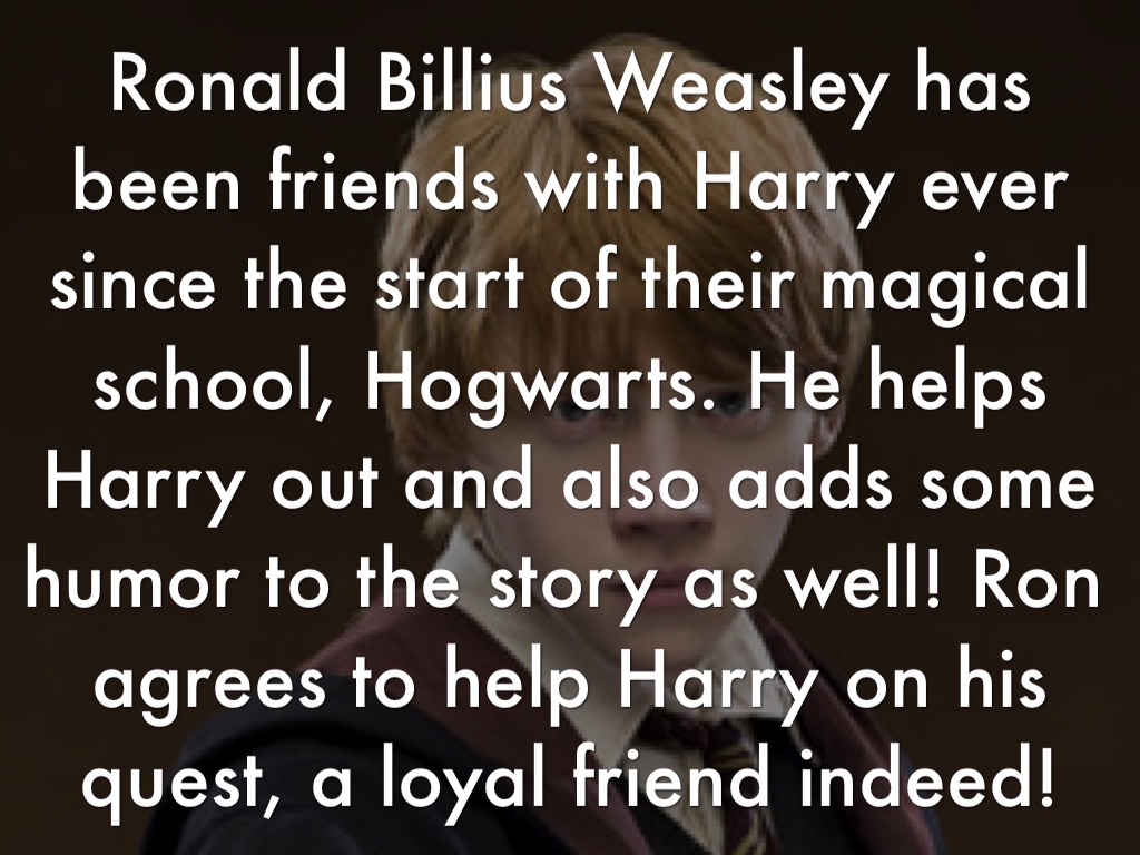 Ronald Billius Weasley has been friends with Harry ever since the start of their magical school, Hogwarts. He helps Harry out and also adds some humor to the story as well! Ron agrees to help Harry on his quest, a loyal friend indeed!