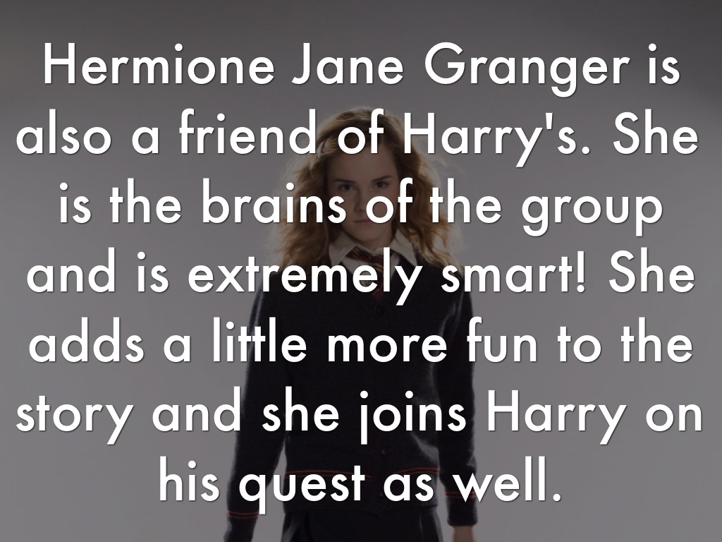 Hermione Jane Granger is also a friend of Harry's. She is the brains of the group and is extremely smart! She adds a little more fun to the story and she joins Harry on his quest as well.