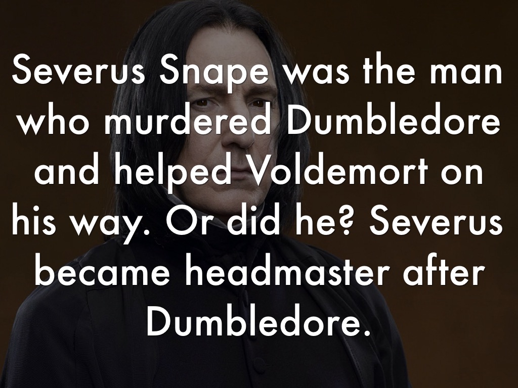 Severus Snape was the man who murdered Dumbledore and helped Voldemort on his way. Or did he? Severus became headmaster after Dumbledore.