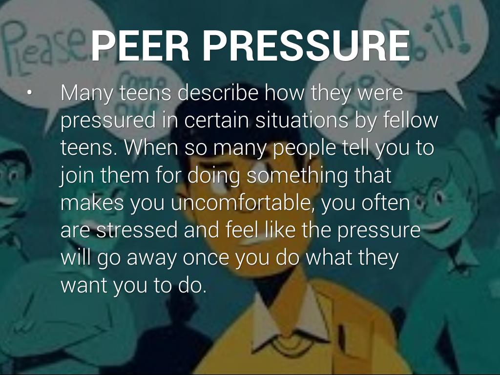 Many teens describe how they were pressured in certain situations by fellow teens. When so many people tell you to join them for doing something that makes you uncomfortable, you often are stressed and feel like the pressure will go away once you do what they want you to do.