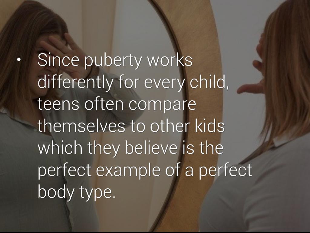 Since puberty works differently for every child, teens often compare themselves to other kids which they believe is the perfect example of a perfect body type.
