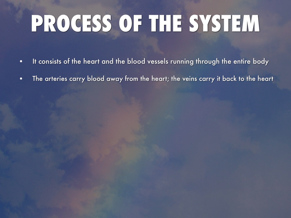 The arteries carry blood away from the heart; the veins carry it back to the heart