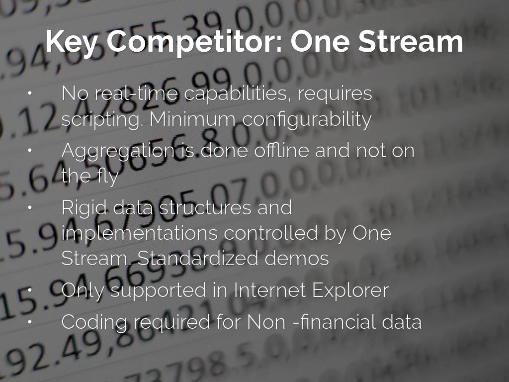Rigid data structures and implementations controlled by One Stream. Standardized demos