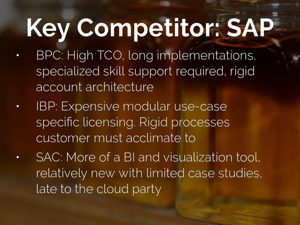 IBP: Expensive modular use-case specific licensing. Rigid processes customer must acclimate to