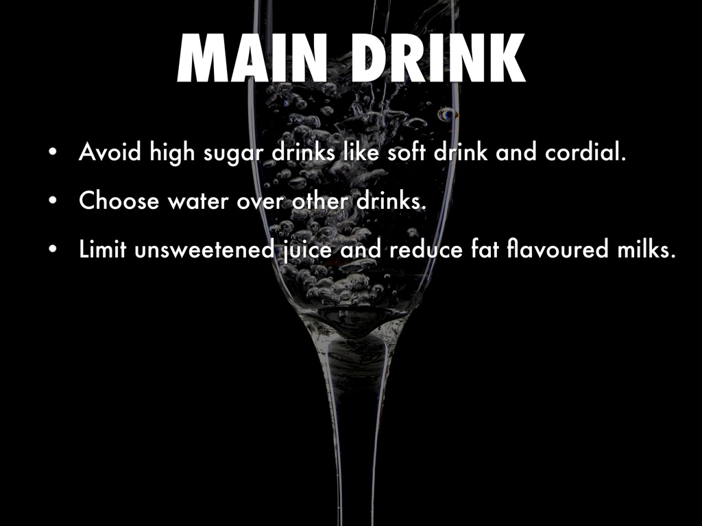 Avoid high sugar drinks like soft drink and cordial.