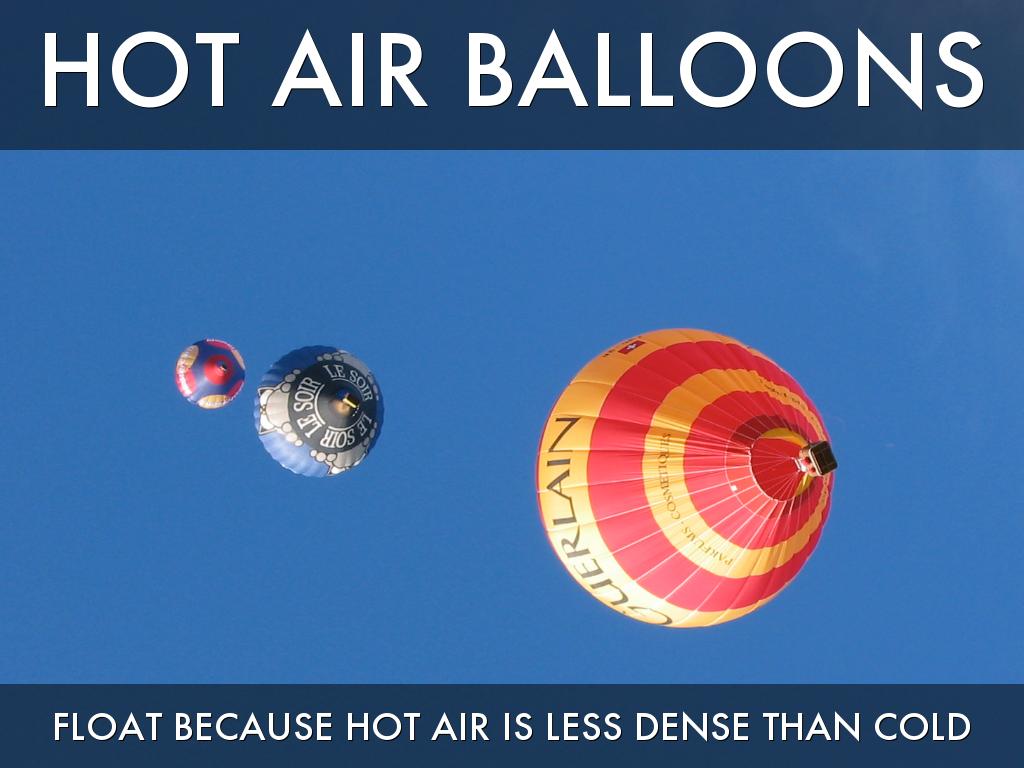 FLOAT BECAUSE HOT AIR IS LESS DENSE THAN COLD