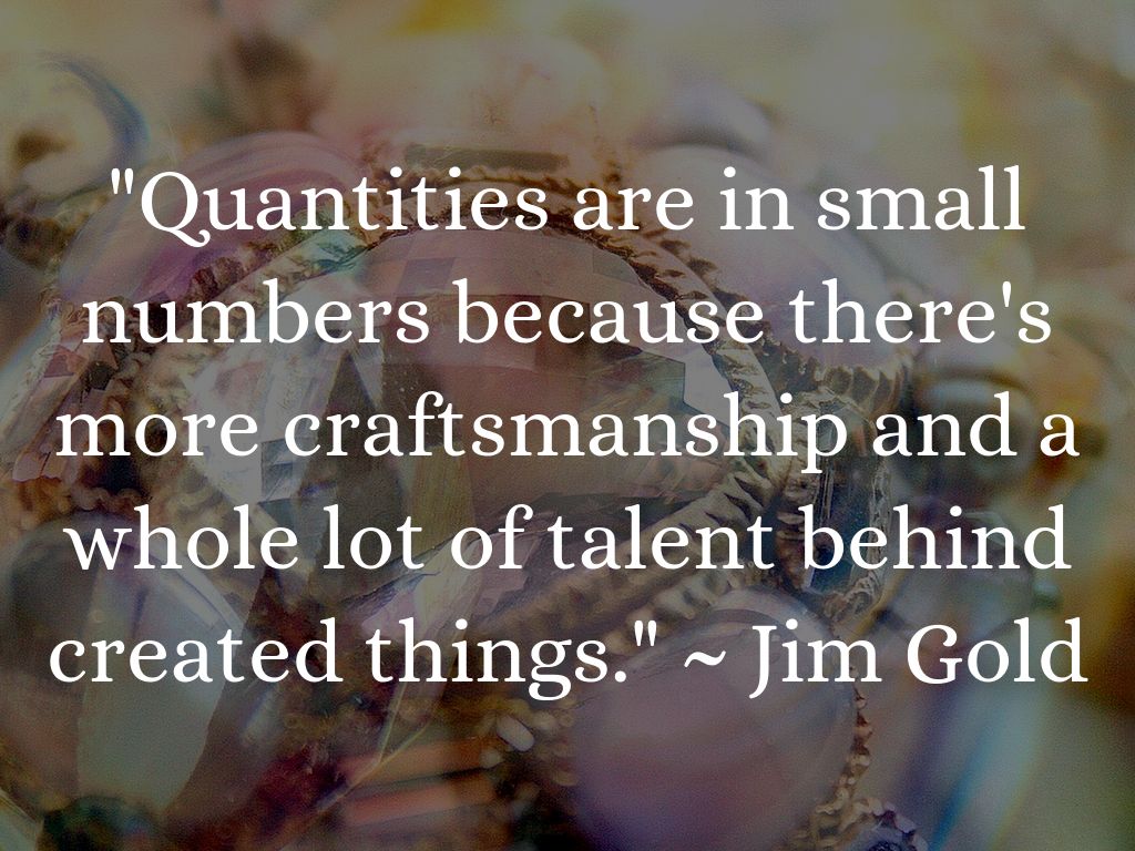 "Quantities are in small numbers because there's more craftsmanship and a whole lot of talent behind created things." ~ Jim Gold