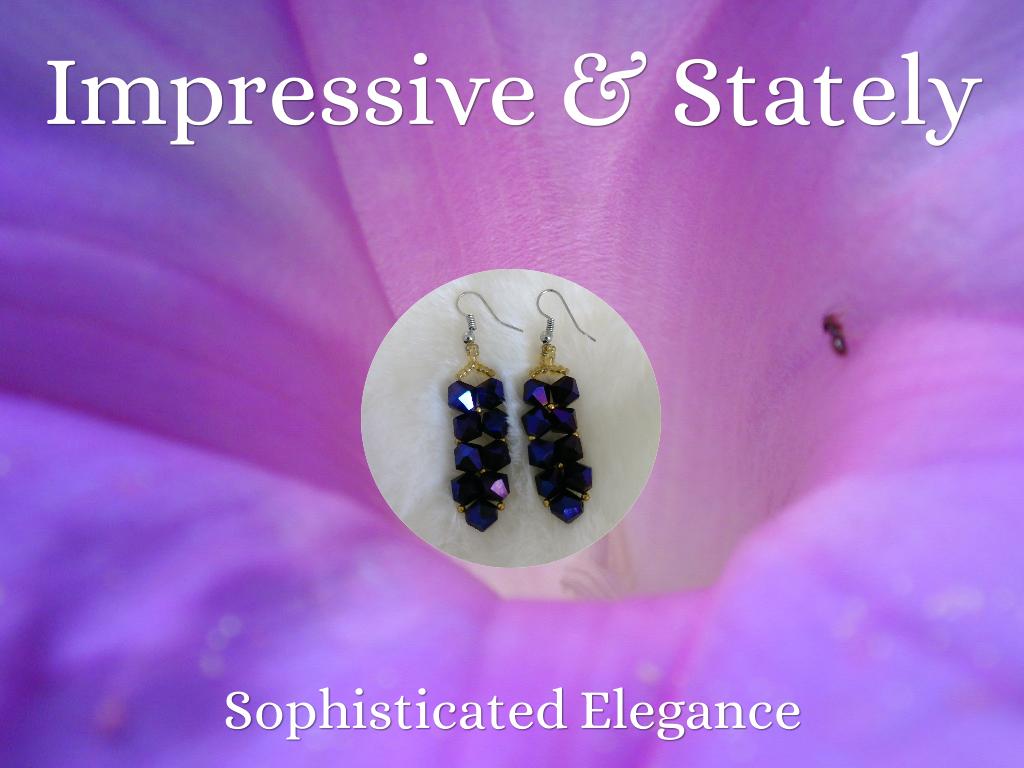 Chic and luxurious, these Indulgent earrings are attention-grabbers. Impressive and stately, these earrings are a nice complement to an evening ensemble to an Alvin Ailey production.