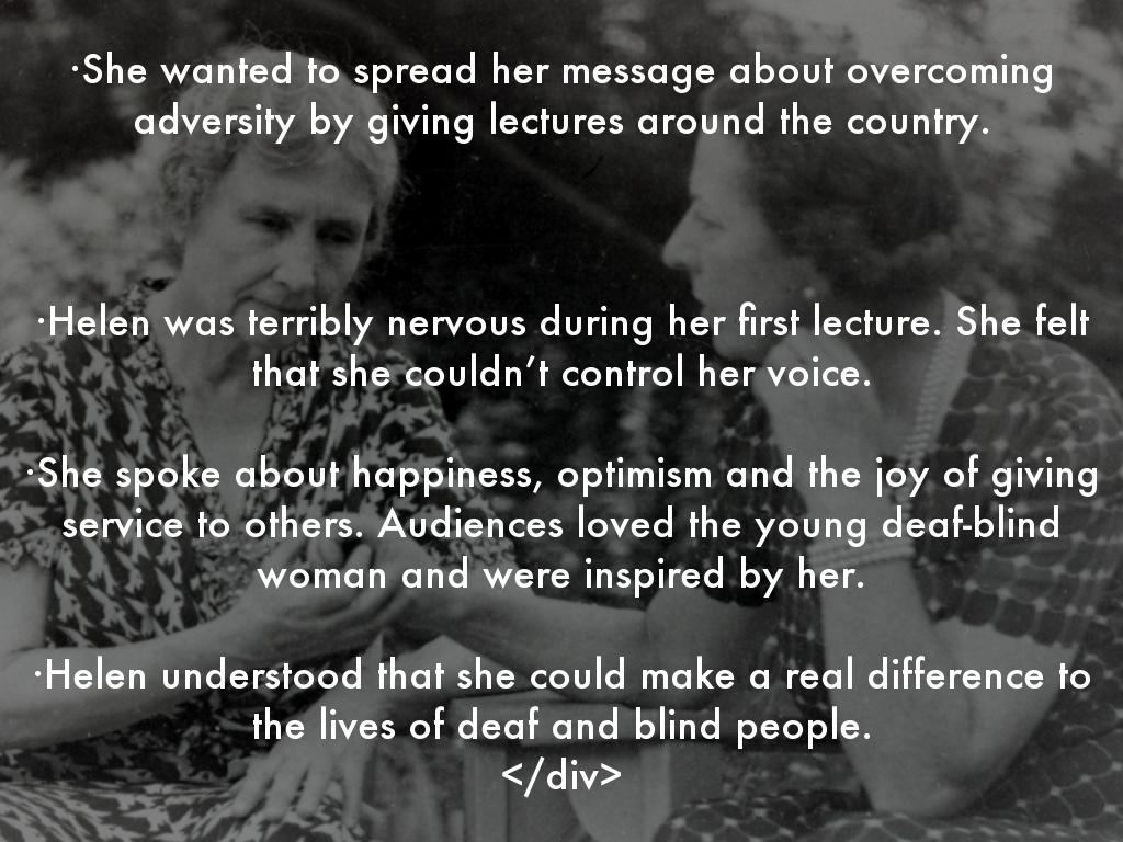 ·Helen then decided that she could spread her message of hope for the blind to more people by acting in a Vaudeville show.